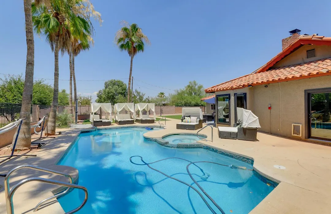 Spacious Las Vegas Getaway With Private Pool And Spa! villa beschikt over een ingerichte keuken met koffie- en theefaciliteiten, een koelkast, een oven. Gasten kunnen dineren in Mama Napoli's Pizza, op ongeveer 1 km afstand. De dichtstbijzijnde luchthaven is McCarran International, op 15 km van de 5-slaapkamer Spacious Las Vegas Getaway With Private Pool And Spa! villa, en Monorail - Flamingo/ Caesar's Palace treinstation is op ongeveer 10 minuten rijden.